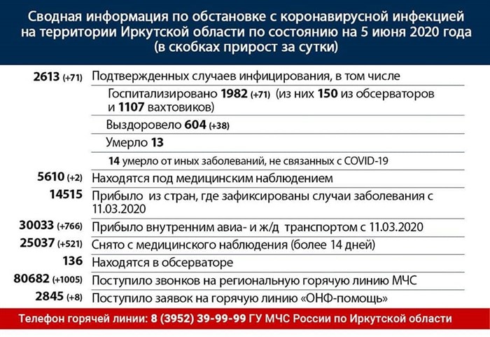 Сводная информация по обстановке с коронавирусной инфекцией на территории Иркутской области