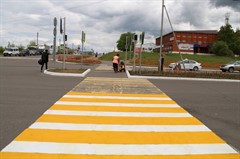 Тем временем, муниципальное предприятие «Саянская дорожная служба» приступило к нанесению разметки на пешеходных переходах. Новые полосы уже появились на переходах улицы Советской – от Бабаева до Советской Армии. Сейчас дорожники работают на улице Советской Армии. Всего же служба нанесет разметку на 54 пешеходных переходах.