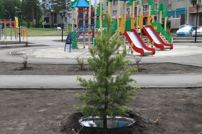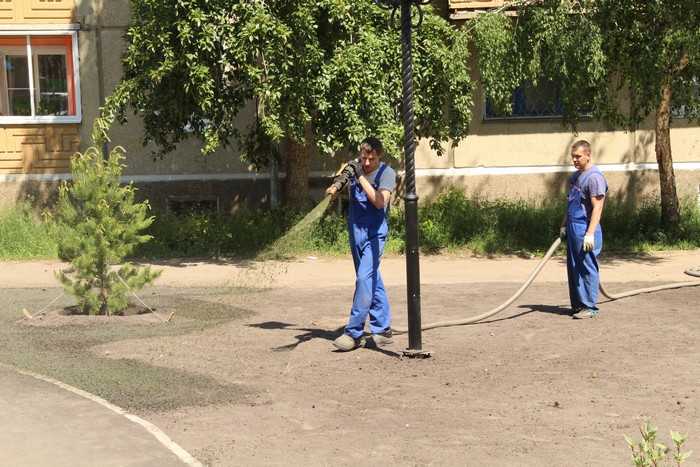На этом озеленение сквера завершается, но строителям еще предстоит выставить ограждение сквера, установить скамейки и урны, а также покрыть резиновой крошкой площадки под детским игровым комплексом и спортивным оборудованием. Все работы должны быть завершены до 1 сентября.