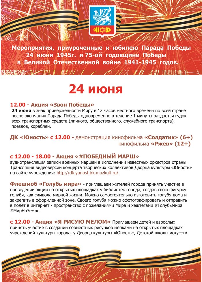 Мероприятия, посвященные юбилею Парада Победы 24 июня 1945 года и 75-й годовщине Победы в Великой Отечественной