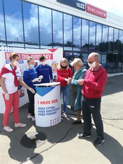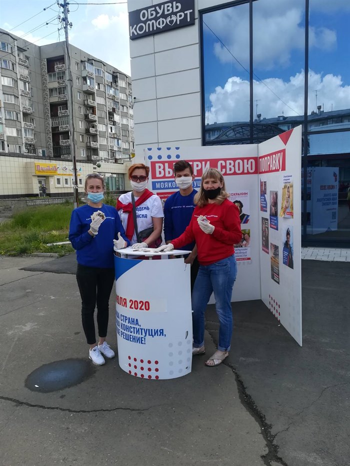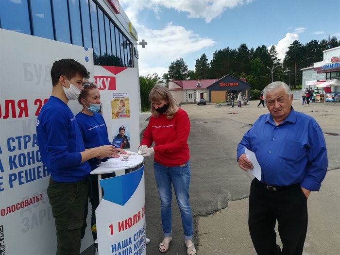 В Саянске участники Всероссийского общественного корпуса «Волонтеры Конституции» информируют население о поправках в основной закон страны и предстоящем общероссийском голосовании.