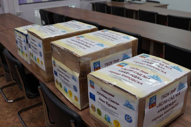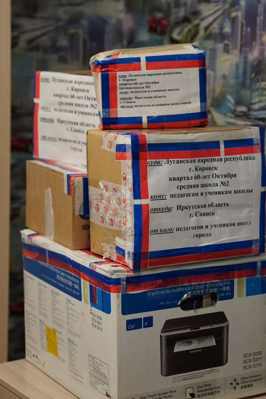 Саянск продолжает помогать Кировску Луганской Народной Республики. Сегодня Центр развития образования и Специальная (коррекционная) школа передали в благотворительный фонд посылки для школ и детских садов подшефного города.