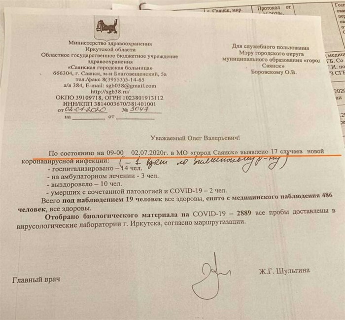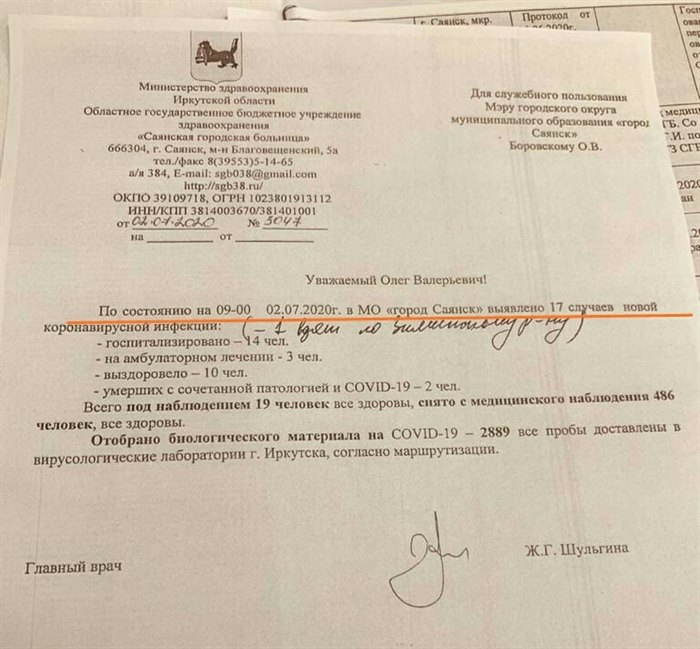Оперативная информация по коронавирусной инфекции по городу Саянску