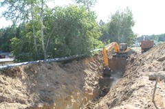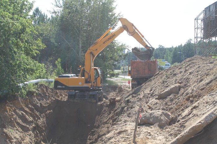 Завершается укладка верхнего слоя асфальта на правом участке дороги от улицы Советской Армии до въезда в город, идет устройство дорожных съездов. Ведутся работы по устройству пешеходных дорожек, ремонт лестницы у ЗАГСа. Устанавливаются закладные под опоры освещения, в ближайшее время начнут устанавливать опоры освещения. Изготавливаются остановочные павильоны. Продолжается ремонт ливневой канализации. Надо отметить, что МУП «Водоканал-Сервис» ведет еще одну, дополнительную «ветку» ливневки, – по просьбам жителей (владельцев гаражей расположенного рядом кооператива) – потому что, как показали недавние дожди, существующая система «ливневки» не справляется с объемом осадков. Учитывая, что изначально она не была заложена в проект, предприятие делает это за счет собственных средств.