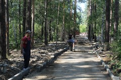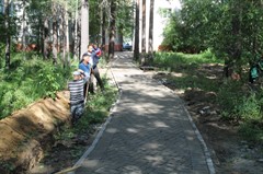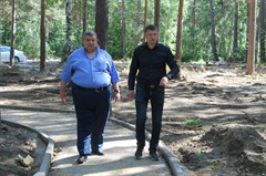 В понедельник, 27 июля, мэр также побывал в парке Таежные бульвары, где проводится благоустройство, пообщался с представителем фирмы-подрядчика. В настоящее время здесь идет строительство административного блока, трибун со скалодромом, чаши сухого фонтана. Прокладывается кабель электроснабжения и освещения, устанавливаются закладные под опоры освещения. Выполнено устройство наружных сетей водопровода и канализации. На дорожках продолжается укладка брусчатки. На площадках, где будет установлено детское и спортивное оборудование, идет подготовка под укладку травмобезопасного покрытия из резиновой крошки. Мэр внимательно осмотрел всю территорию, сделал ряд замечаний, напомнил подрядчикам о необходимости строго уложиться в график, особое внимание обратил на то, что в тех местах, где оголяются корни деревьев, будет необходимо «укрыть» их грунтом.