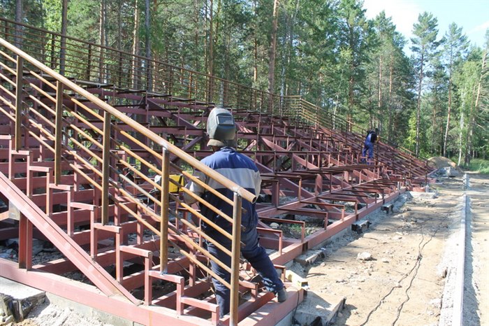 Завершаются работы на спортивном комплексе «Дом спорта», а на площадке рядом с ним идет устройство фундамента крытого хоккейного корта, который так ждут саянцы.