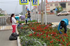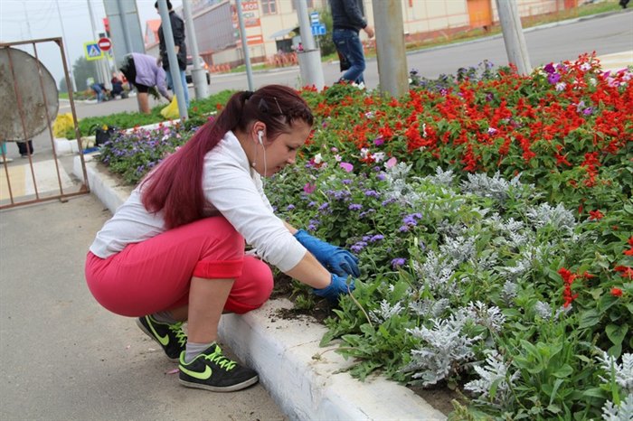 - Сегодня мы помогаем нашей Дорожной службе привести в порядок городские клумбы и газоны. Город готовится к празднику и каждый должен внести свой вклад.