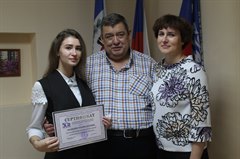 Сертификат на премию в размере 30 тысяч рублей вручен еще одной саянской выпускнице – Полине Лысиковой, набравшей на ЕГЭ в сумме 259 баллов. Полина – выпускница школы №2. По информатике она набрала 92 балла, русскому языку – 91, математике – 76.