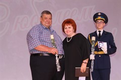 На сцену поднимались педагоги, сдавшие нормативы ГТО, заместитель мэра Александр Ермаков вручил работникам образования золотые знаки отличия физкультурно-спортивного комплекса.