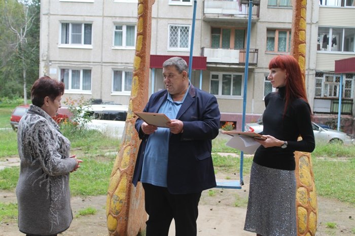 На встрече во дворе №5 были вручены дипломы участникам городского смотра-конкурса на лучшее благоустройство «Цветущий город». Дипломы подкреплены денежными сертификатами – на приобретение семян, чтобы активные цветоводы дальше продолжали свою работу по созданию красоты во дворе. При этом жители отметили, что хотели бы поблагодарить собственника расположенного рядом с этим домом мебельного магазина – за его большую работу по озеленению близлежащей территории.