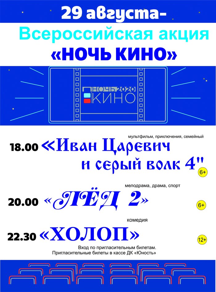 Жителей Саянска приглашают 29 августа принять участие в кинопросмотрах Всероссийской акции «НОЧЬ КИНО 2020»