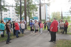 На встрече во дворе дома №1 жители жалуются на то что у аптеки, расположенной в доме, не благоустроена площадка на входе. «Обяжем собственника», – дает мэр поручение сотрудникам администрации. Жители говорят о том, что необходимо решить вопросом по остаткам школьного бассейна, который пытались строить на этом месте в советское время, но так и не завершили.