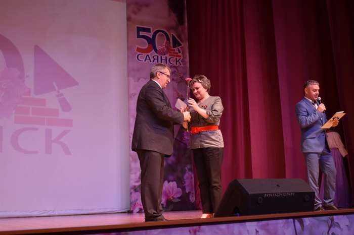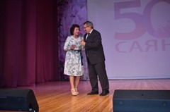 Приветствовал собравшихся в зале заместитель мэра города Александр Ермаков. От имени мэра Олега Боровского он поздравил с праздником, отметив, что это событие – еще один повод сказать огромное спасибо тем людям, которые внесли значительный вклад в развитие города, региона, их трудовая лепта в могуществе и силе государства нашего. Александр Владимирович пожелал ветеранам здоровья, благополучия, а тем, кто продолжает работать – успехов в труде и вручил юбилейные медали «50 лет городу Саянску» ветеранам.