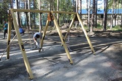 Олег Боровский также проконтролировал ход работ в парке Таежные бульвары, который преображается на глазах. В парке много детей, мамочек с колясками, пенсионеров.