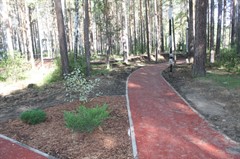 В парке созданы различные тематические зоны. Есть спортивная, с трибунами, скалодромом и тренажерами. Установлены столы для шахматистов и теннисистов. Выполняется амфитеатр, зона для молодежного досуга с уникальным освещением и гамаками. Есть большая детская площадка, с игровыми комплексами. Будет беседка для летнего кинотеатра. Прогулочные дорожки, дорожки для велосипедистов. В этом парке впервые применили брусчатку. Сделан замечательный «сухой» фонтан, в очень интересном исполнении, с цветовой подсветкой струй. Установлены поворотные скамьи. Первостепенная задача, которая ставилась при разработке проекта благоустройства – максимальное сохранение зеленых насаждений. И она выполнена. Дорожки буквально лавируют между стволами. Проведено озеленение, над которым работали специалисты-дендрологи. Здесь также планируется батутный центр. Намечено место под кафе-мороженое.