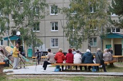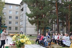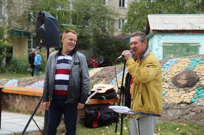 Старший по дому Александр Галыга от лица жителей благодарил всех, кто причастен к благоустройству. Он отметил, что все, что было запланировано, сделано, причем хорошо, добротно. Он выразил надежду, что такие праздники станут традицией дома №15. По его приглашению, а как саянцы знают, Александра Андреевича как барда, исполняющего и песни своего сочинения, а также знаменитых поющих поэтов − Юрия Визбора, Олега Митяева. В компании с Александром перед жителями выступили Василий Дорбеко и Максим Сапрыкин. Стихи собственного сочинения прочла поэтесса, член Союза писателей Галина Балдакова-Тихая.