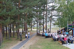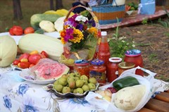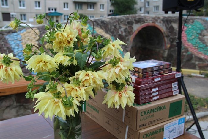 Приятная музыка, теплая дружеская атмосфера, накрыт стол дарами осени, пирогами, домашними заготовками, украшен букетами цветов и причудливыми овощами. Ребятня испытывает свой двухколесный транспорт на свеженьких асфальтовых дорожках, взрослые уютно устроились на новеньких скамейках – прекрасный вечер.