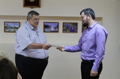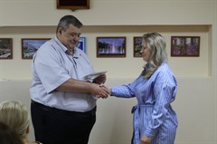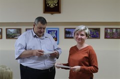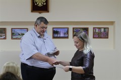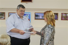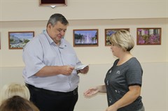 Олег Боровский поблагодарил преподавателей Детской школы искусств, работавших над оформлением интерьера детского сада №1 «Журавленок» и вручил им денежные премии от благотворительного фонда местного сообщества.