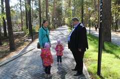 Осматривая парк, обсуждая с подрядчиком технические вопросы, Олег Валерьевич много общался с людьми, гулявшими по парку, потому что все, что делается в городе – делается для его жителей, для их удобства и комфорта и очень важно знать, достигнута ли эта цель. В парке много людей самого разного возраста, в их числе мамы с колясками, пенсионеры, дети и подростки.