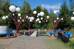 - Эти идеи мы можем использовать для реконструкции горнолыжного комплекса «Северный», – поясняет Мария Данилова. – Вдохновляет разнообразие множества конструкций: входная конструкция «Лес», входная арка, спортивная база, фонтан «Капли росы», лыжные мостики, природная детская площадка «Сказочный лес», многофункциональный центр «CUBE», здесь находится небольшой зал под открытым небом с местами-лежаками для зрителей на нескольких уровнях, а также сценой и экраном, установленной компанией Теле2, теневые навесы «Грибы», и снова площадка для выгула собак, арт-объект «Ветряки». Использованы брусчатка, щепа, мраморная крошка, рулонный газон, все гармонирует между собой.