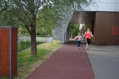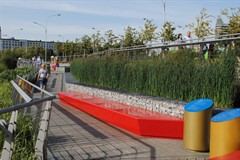 - На данной территории мы увидели большое количество резинового покрытия, из него выполнена беговая дорожка, – говорит Мария Данилова. – А вот с 2017 года проектные группы Казани уходят от резинового покрытия, считая данный элемент благоустройства очень дорогим удовольствием, теперь на общественных пространствах в основном используют щепу, песок.