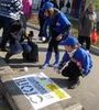В результате акции на тротуарах остались яркие предупреждающие надписи, вид которых, возможно, кого-то остановит от перехода дороги в неустановленном месте.