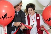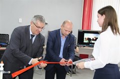 Как всегда ярко, красочно и торжественно прошло мероприятие в школе №5. Оформленное в фирменных цветах проекта помещение, рационально размещенное оборудование, но главное – трансляция церемонии на уровне федерации.