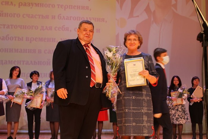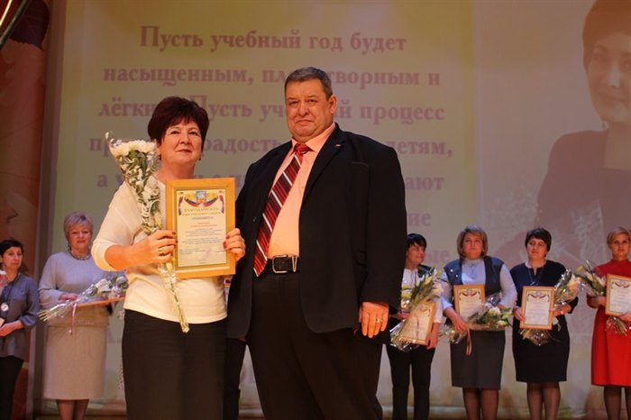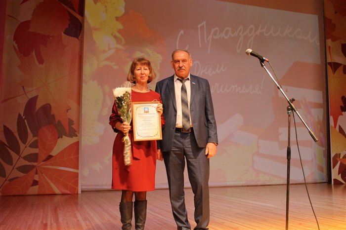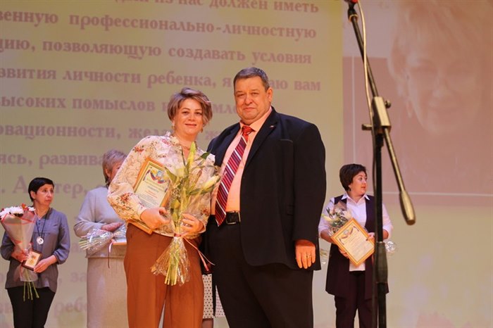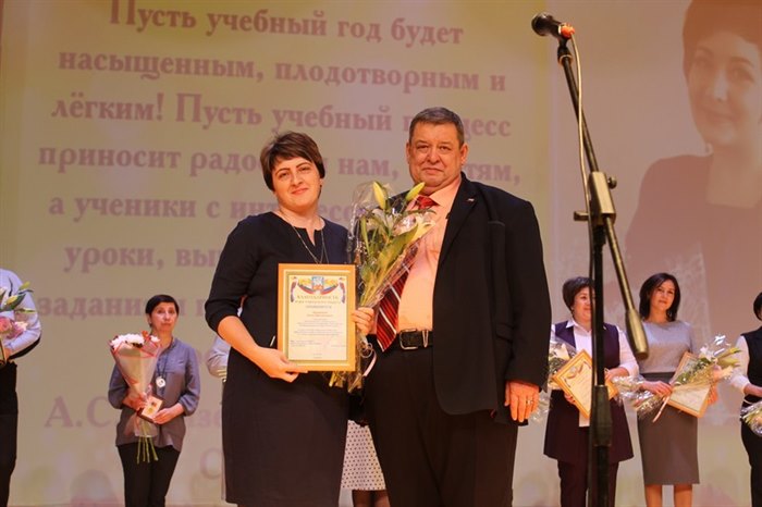 С поздравлениями и словами добрых пожеланий со сцены дворца культуры обращались председатель профсоюза работников образования Ольга Ливанова, председатель Думы Юрий Перков, начальник управления образования Инна Кузюкова, директор Центра развития образования Татьяна Бадулина.