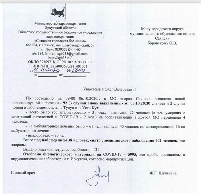 ОПЕРАТИВНАЯ ИНФОРМАЦИЯ ПО КОРОНАВИРУСУ по Иркутской области