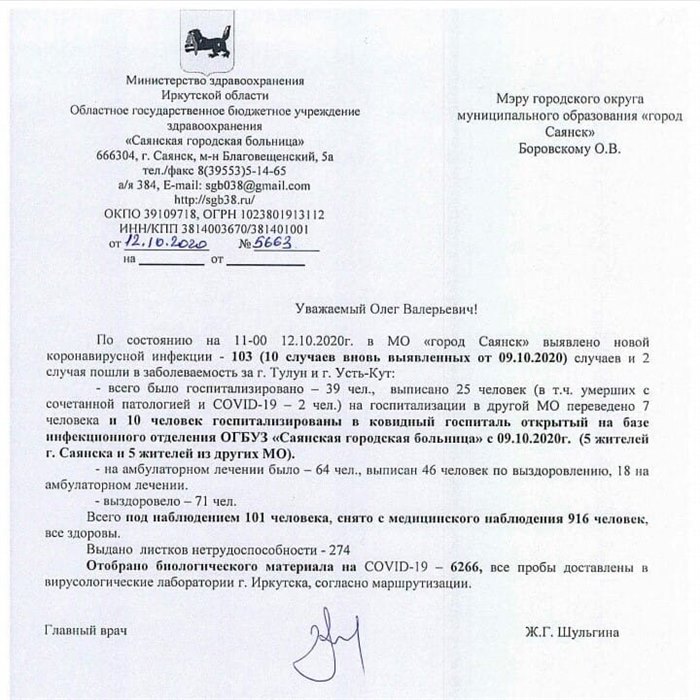 ОПЕРАТИВНАЯ ИНФОРМАЦИЯ ПО КОРОНАВИРУСУ по Иркутской области
