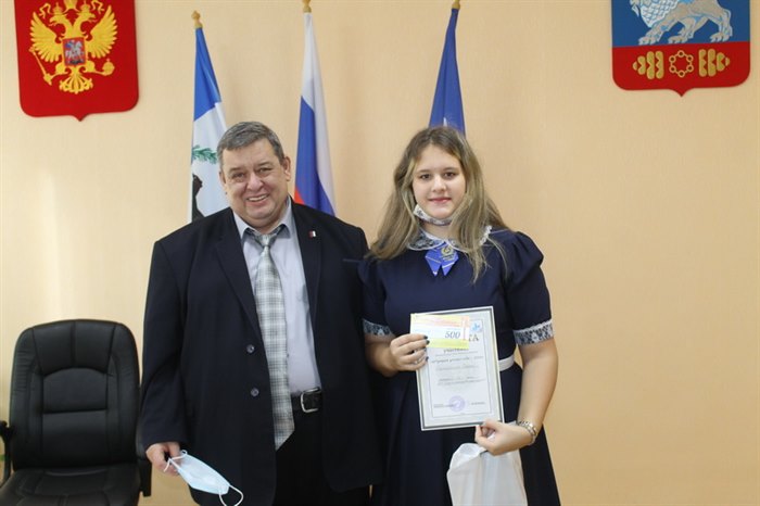 Победитель городского конкурса «Лучший ученик года – 2020» – Анна Таракова из школы №5. Награждение состоялось в администрации города.