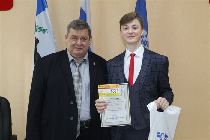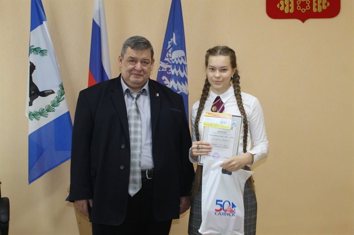 Все участники получили в подарок сертификаты на приобретение канцелярии и наборы с юбилейной символикой Саянска – ежедневники, «флешки», ручки.