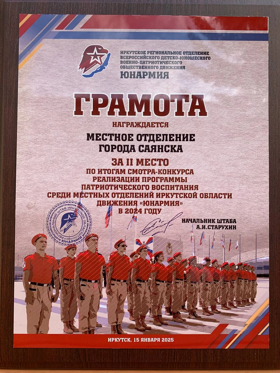 Местное отделение города Саянска завоевало 2 место в престижном смотре-конкурсе реализации программы патриотического воспитания среди местных отделений Иркутской области движения «Юнармия» в 2024 году!