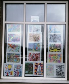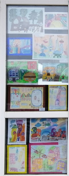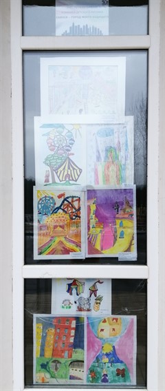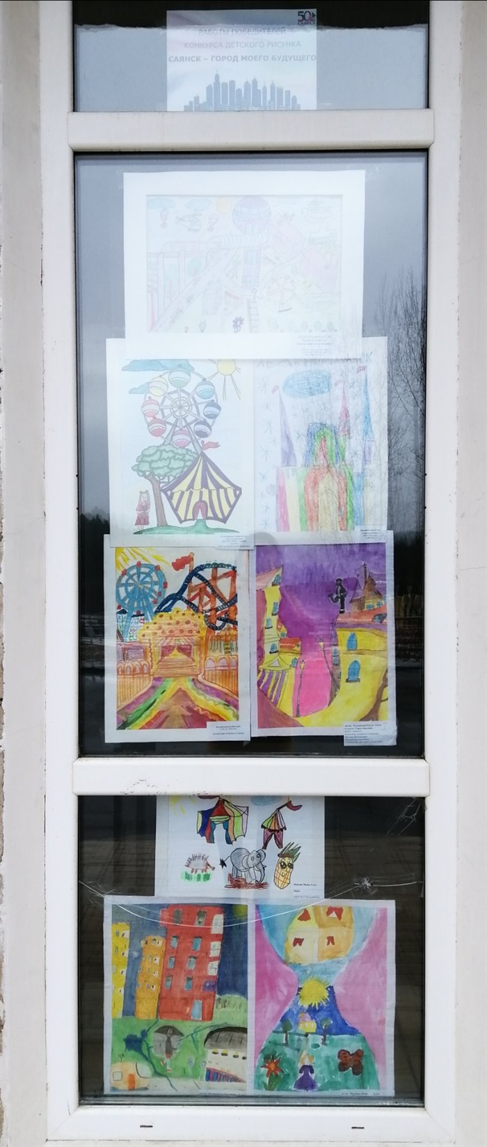 В рамках юбилейного года в окнах картиной галереи и музея истории города Саянска представлена выставка работ победителей конкурса детского рисунка «Саянск – город моего будущего».