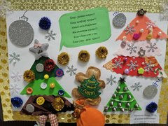 Все ребята, согласно условиям конкурса представили на суд жюри поздравительные открытки для Елочки в технике аппликации или коллажа. Талантливо выполненные произведения участников разместились в окнах и фойе.