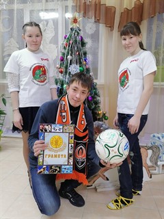 Футбольная команда «Скиф» и тренер по футболу Геннадий Григорьев поздравили с Новым годом юного футболиста Ивана Константинова. Ване 17 лет. Он − воспитанник Саянского детского дома-интерната. В футбол играет с 13 лет, и как говорит тренер, подает большие надежды как отличный вратарь и в целом – хороший спортсмен.