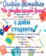 Дворец культуры "Юность" и отдел по молодежной политике администрации города Саянска приглашают студентов принять участие в онлайн-флешмобе "На студенческой волне",приуроченного ко Дню студента.