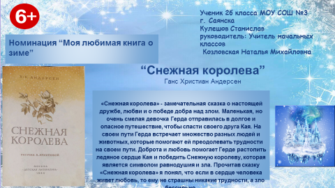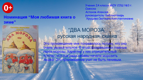 В рамках сотрудничества Центра развития образования города Саянска со школьными библиотеками города Лысьвы Пермского края, ученики и библиотекари саянских школ №3, №6, №7 приняли участие в межрегиональной открытой заочной акции «ЗИМА_И_КНИГА», цель которой – вовлечение ученического сообщества в процесс продвижения книги и чтения средствами интернет-ресурсов.