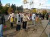 Пока с импровизированной сцены звучали слова приветствия участникам акции, работники ООО «Чисторгад» подготовили все необходимое для посадки. Дружной командой люди разных поколений принялись за дело. В считанные минуты были разобраны орудия труда: лопаты, ведра, носилки. Закипела работа. Вскоре на месте пустыря еще не опавшими листьями зашелестели деревца.