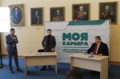 Во встрече приняли участие проректор по учебной работе Иркутского госуниверситета Алексей Вокин, председатель студенческого координационного совета Иркутской области Маргарита Цыганова. Разговор состоялся в рамках тематической площадки «Моя карьера» Центра развития карьеры и трудоустройства ИГУ, ведущим которой стал заместитель председателя профкома студентов ИГУ Владислав Сметанин.