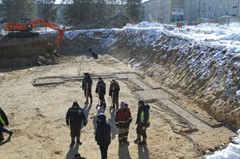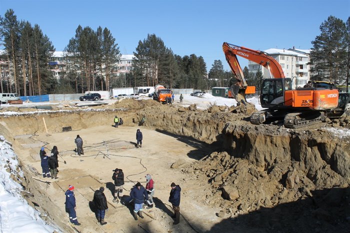 Кипит работа на стройплощадке детского сада в микрорайоне Мирном. Подрядчик – ООО «Ново-Строй». Выполнено ограждение территории. Установлены бытовые помещения. Разработаны котлованы под два блока здания. Приступили к бетонной подготовке под фундаменты. 4 марта подается первый бетон.