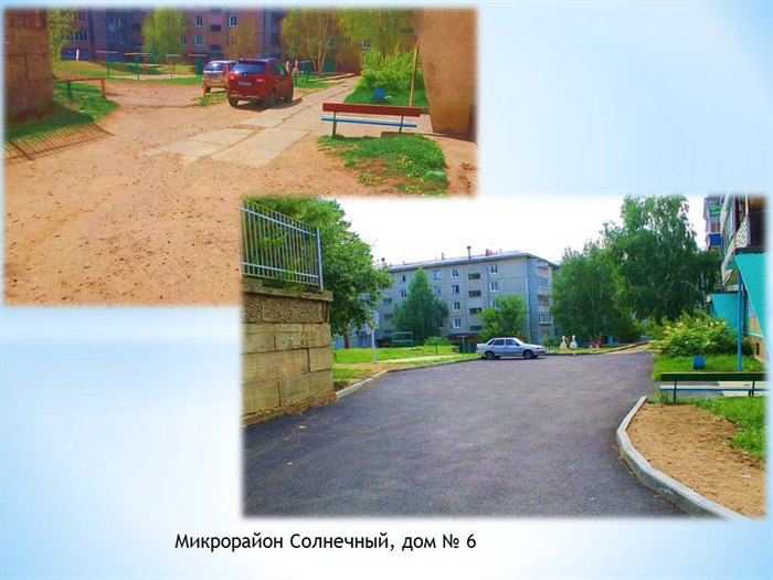 Именно так и поступили жители 51 двора, в которых уже отремонтированы дворовые проезды, пешеходные дорожки и тротуары, появились парковочные карманы. Это дома №№ 1, 2, 3, 4, 12, 15, 17, 18, 19, 20, 23, 24, 29, 34, 41, 43, 65, 67, 69 – микрорайона Юбилейного; дома №№ 1, 2, 4, 7, 14 – микрорайона Центрального; дома №№ 2, 3, 6, 9 – микрорайона Солнечного; дома №№ 1, 6, 9, 12, 13, 14, 15, 17 – микрорайона Строителей; дома №№ 8, 10, 31, 32 – микрорайона Олимпийского; дома №№ 3, 7, 10Б, 11 – микрорайона Октябрьского; дома №№ 1, 2, 16 – микрорайона Ленинградского; дома №№ 5, 10, 13, 24 – микрорайона Мирного. Общий объем средств, затраченных на благоустройство – 84,4 млн. рублей.