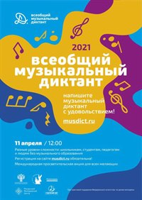 11 апреля 2021 года в 66 городах России, а также в ряде зарубежных стран состоится III Международная просветительская акция «Всеобщий музыкальный диктант – 2021». Методический координатор проекта – Российская академия музыки имени Гнесиных.