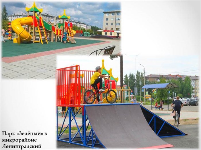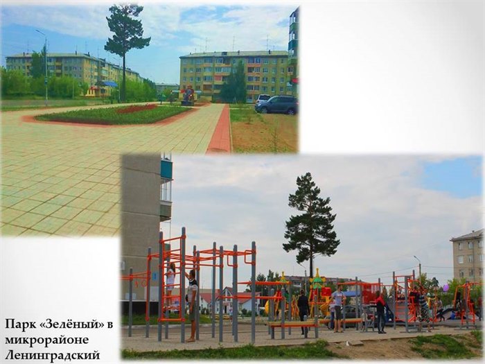 Еще в 2016 году территория возле дома № 1 микрорайона Ленинградского была просто пустырем, с протоптанными «народными тропами». Сейчас на его месте обустроен парк «Зеленый», который пользуется популярностью у жителей всех возрастов.