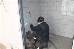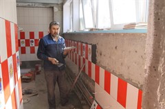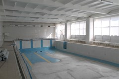 Идут работы в бассейне «Золотая рыбка». Как пояснил представитель компании, выполняющей ремонт, по периметру верхней части борта чаши бассейна делается монтажная полоса из жести с напылением ПВХ. Затем поверхность чаши будет оклеена биотекстилем – выполнена так называемая подложка. Потом будет сделано гидроизоляционное покрытие из пленки ПВХ – оно «приваривается» горячим воздухом к монтажной полосе – получается абсолютно герметичное соединение. Все работы займут порядка двух недель.