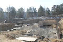 На строительной площадке детского сада завершены работы по бетонной подготовке. В 100-процентном объеме выполнены фундаменты и фундаментные балки. Ведется армирование колонн и стен. На объекте трудятся 35 человек. Идет подготовка к прокладке водопровода.