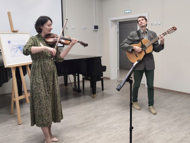 Порадовали гостей своими музыкальными произведениями уже полюбившиеся многим саянцам скрипачка Любовь Полетаева и гитарист Евгений Ивакин.