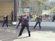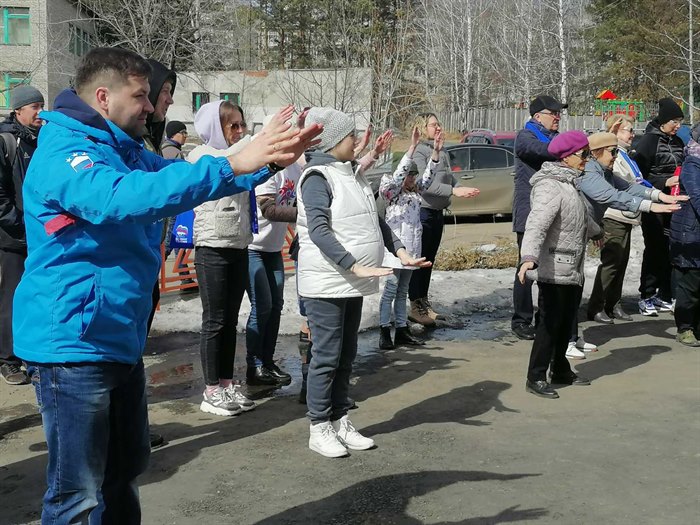 Прохладный ветерок не стал помехой для любителей здорового образа жизни, которые собрались на открытой площадке, чтобы провести зарядку на свежем воздухе. Поддержать активистов пришли саянцы целыми семьями, собралось немало детей, представителей серебряного возраста.