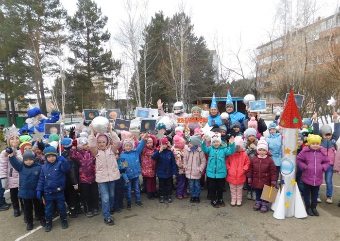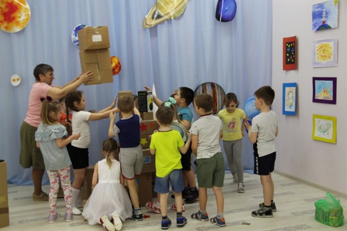 Педагоги подготовили для своих воспитанников познавательно-развлекательное путешествие по космическим станциям. Оно прошло в формате квеста. Ребята выполняли несложные задания, получая за правильные ответы детали космического корабля, который требовалось собрать на самом последнем этапе.