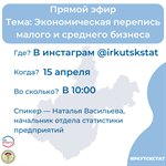 15 апреля в 10:00 в Инстаграм аккаунте Иркутскстата @irkutskstat будет проведён прямой эфир про экономическую перепись малого и среднего бизнеса.